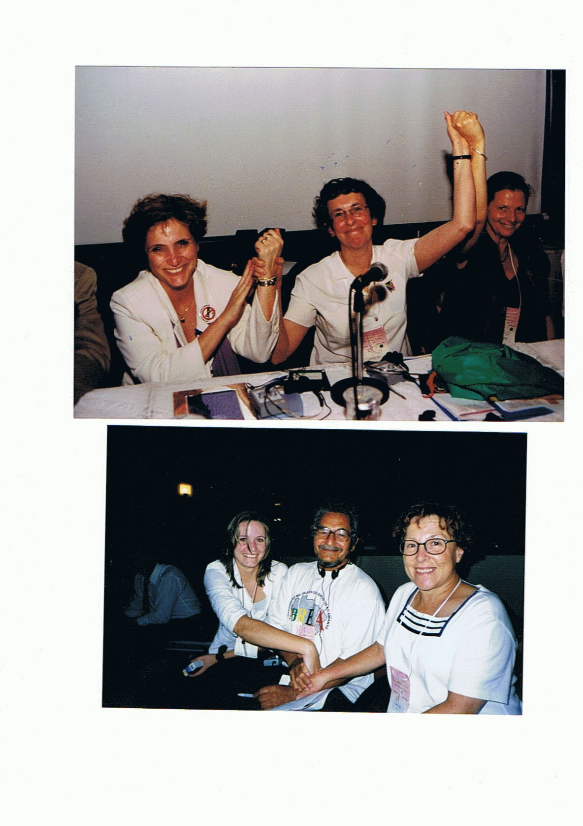 Notre amie Fernanda Giannasi, inspectrice du travail au Brésil, a pris sa retraite cette semaine. Une grande partie de ce qui s'est passé dans la campagne mondiale de Ban Asbestos a bénéficié du travail et de l'inspiration de Fernanda qui a eu l'idée d'organiser le Congrès mondial de l'amiante à Osasco en 2000 dans la suite des réunions de Milan en 1993 et de Sao Paulo en 1994. Ci-après, deux photos prises au premier congrès mondial de l'amiante à Osasco en 2000 représentant le symbole de notre solidarité dans le réseau Ban Asbestos : (la première avec Fernanda, Laurie Kazan-Allen et Annie Thébaud-Mony et la seconde : Henri Pézerat (premier militant anti-amiante en France), Hélène Boulot (coordinatrice de l'Andeva pendant 10 ans), Eleizer (ancien ouvrier de l'usine Eternit à Osasco et président d'Abrea) et Josette Roudaire (ancienne ouvrière de l'usine de textile Amisol en France). Fernanda, avec l'aide de Laurie, et notre solidarité internationale, ont réussi à faire partager leur expérience de luttes et c'est vraiment la mondialisation telle que nous la concevons dans le réseau Ban Asbestos. Nous adressons à Fernanda, avec tous nos remerciements, notre amitié indéfectible (lire l'hommage de Laurie Kazan sur le site d'Ibas).